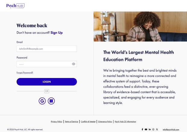 Psych Hub is on a mission to improve mental health care and outcomes for all. Psych Hub offers the only end-to-end platform that empowers the entire mental health ecosystem — the individuals seeking mental health support, the practitioners delivering it, and the organizations supporting them — with evidence-based education and resources.